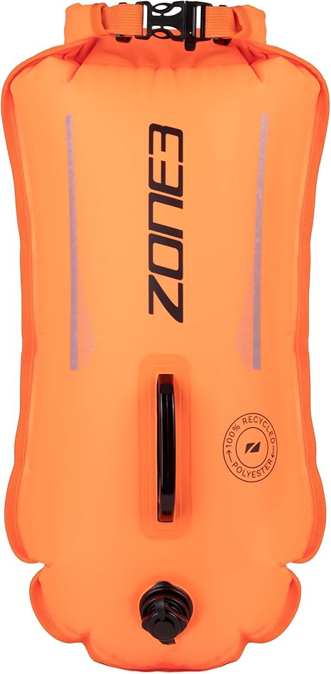 Built from tough Italian-made fabric, this buoy is known for durability. It has a generous 28 L capacity and a solid valve that doesn’t leak after repeated use. Some reviewers note the orange color is slightly duller than other brands, but it still provides good visibility. It’s a solid long-term investment if you swim often in open water.